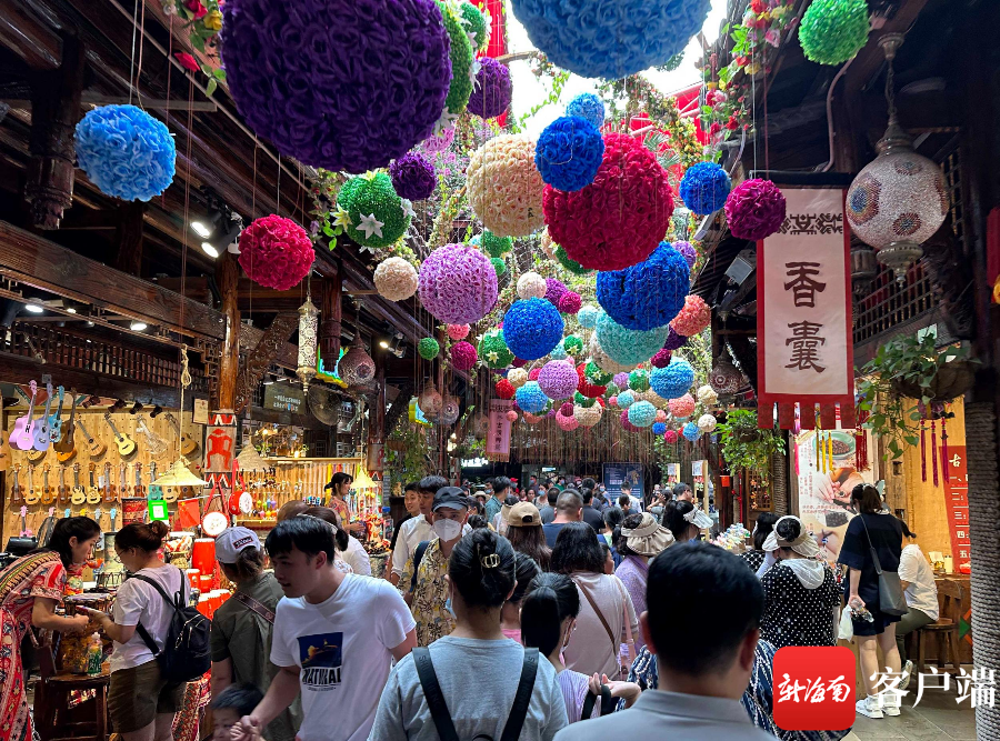 5月1日,游客在三亞千古情景區游玩。記者沙曉峰攝