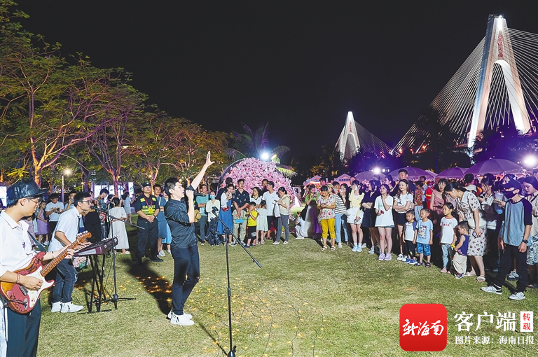 市民在海口世紀(jì)大橋下看演出。海南日報記者 封爍 攝