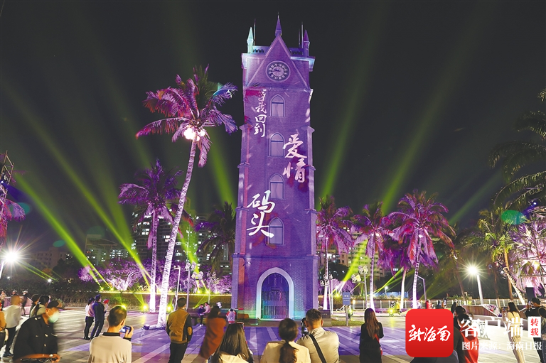 海口鐘樓燈光秀。海南日報記者 李天平 攝
