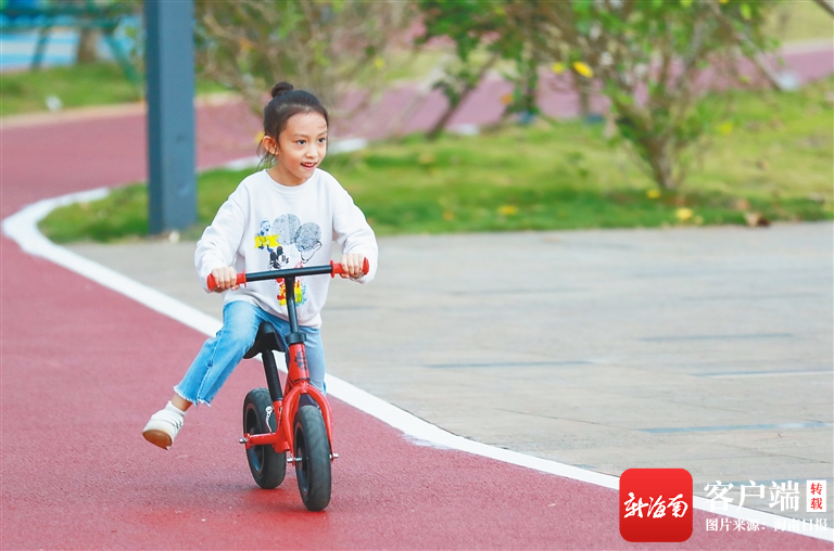 一位小朋友在海口灣一帶騎行。海南日報記者 李天平 攝