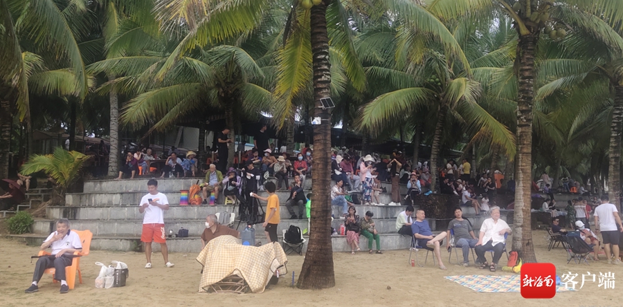 10日下午,一陣小雨過后,龍樓鎮(zhèn)的天氣特別涼爽,越來越多的游客涌向淇水灣海灘,這里的10多個特色小吃攤?cè)藬D人。為了看火箭發(fā)射,不少人是拖家?guī)Э诙鴣怼@嘶〒舸蚓奘克疄趁谰叭绠嫛S械挠慰驮诖岛oL(fēng)、有的背對美景自拍、有的自帶小桌子沖茶喝,有的甚至連寵物狗也帶來了。來自江蘇的李先生69歲了,他告訴記者,“五一”假期,他和老伴從老家來文昌旅游,得知有火箭發(fā)射,干脆在龍樓鎮(zhèn)上的賓館住了將近10天,為的是能觀看一次火箭發(fā)射,不給人生留遺憾。