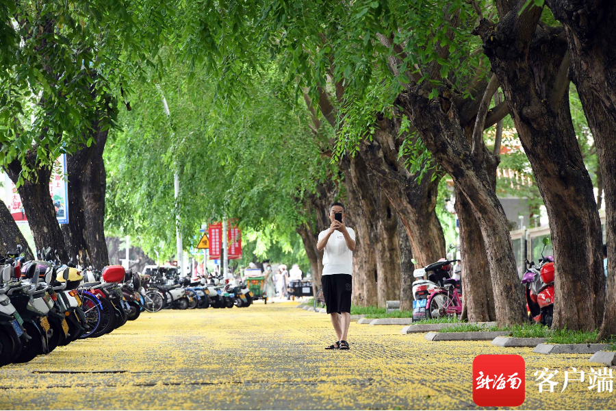 新海南客戶端、南海網、南國都市報5月15日消息(記者 沙曉峰)五月的三亞街頭,正值紫檀花開,微風輕拂,金黃色的小花落滿地,遠遠望去好像給大地鋪上一層黃燦燦的地毯。