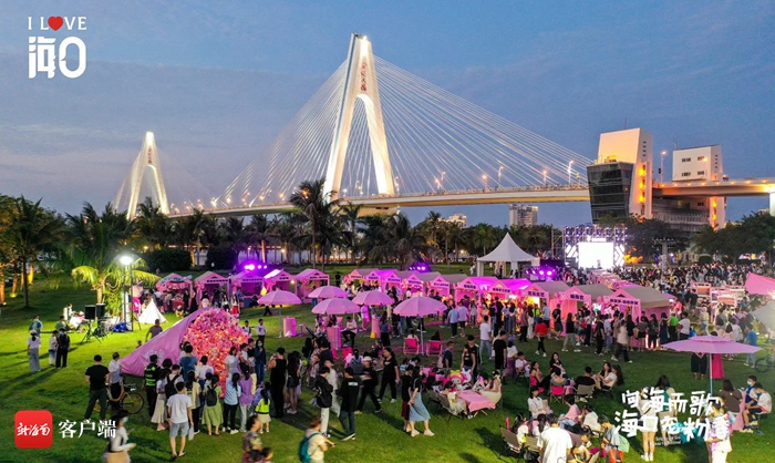 5月16日晚,I LOVE??诔鞘兄黝}市集(下稱“城市主題市集”)在海口世紀公園草坪熱鬧開市,五大展區的消費場景,給市民游客帶來了耳目一新的消費體驗。