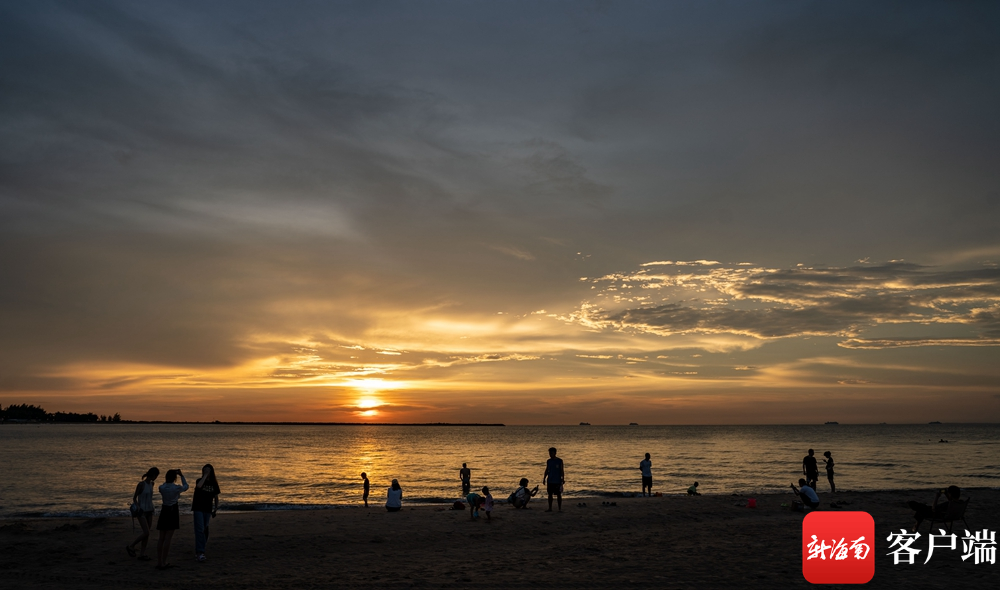 新海南客戶端、南海網(wǎng)、南國都市報5月26日消息(記者 劉孫謀)5月26日下午6時,在海口市棲海岸露營基地,一場降雨過后,海口出現(xiàn)美麗的晚霞,金色的陽光灑在沙灘上,吸引了許多市民前來游玩拍照,有不少市民在沙灘上戲水,還有市民在此一邊喝椰子水一邊打邊爐,美景美食相伴,好生愜意。
