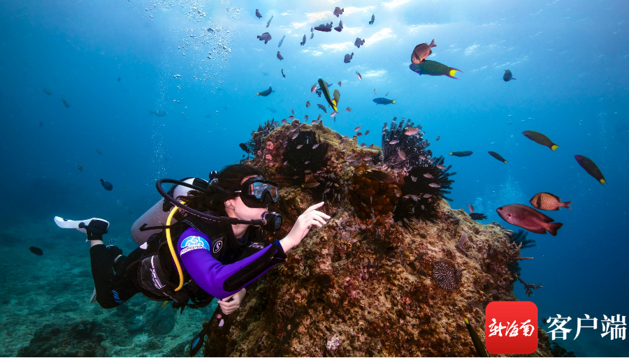 游客在蜈支洲島潛水。蜈支洲島旅游區供圖