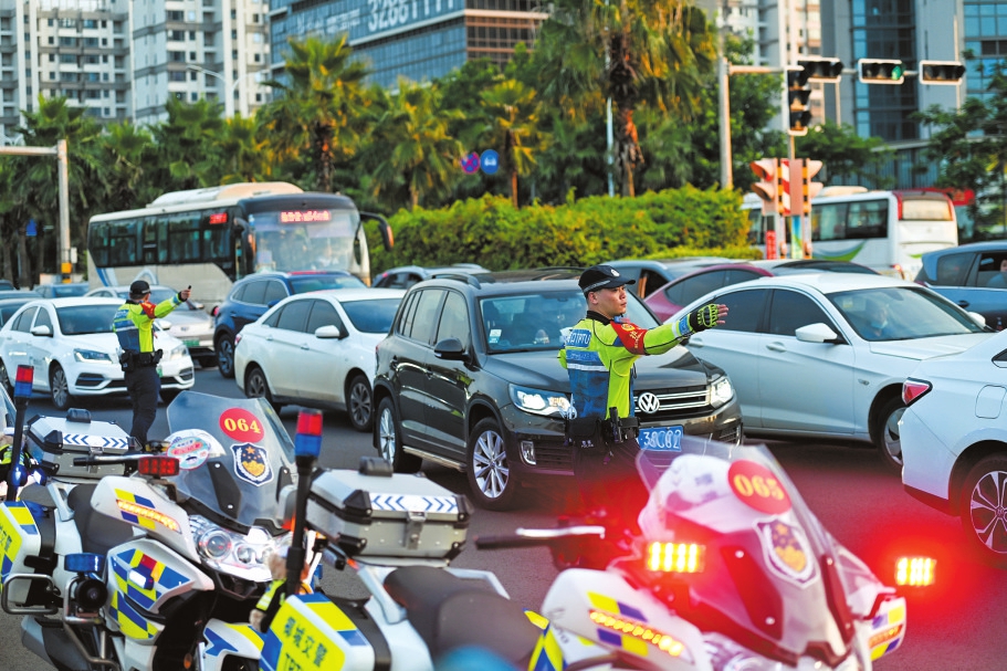演唱會場館外圍,交警忙著疏導(dǎo)交通。海口日報(bào)記者 石中華 攝