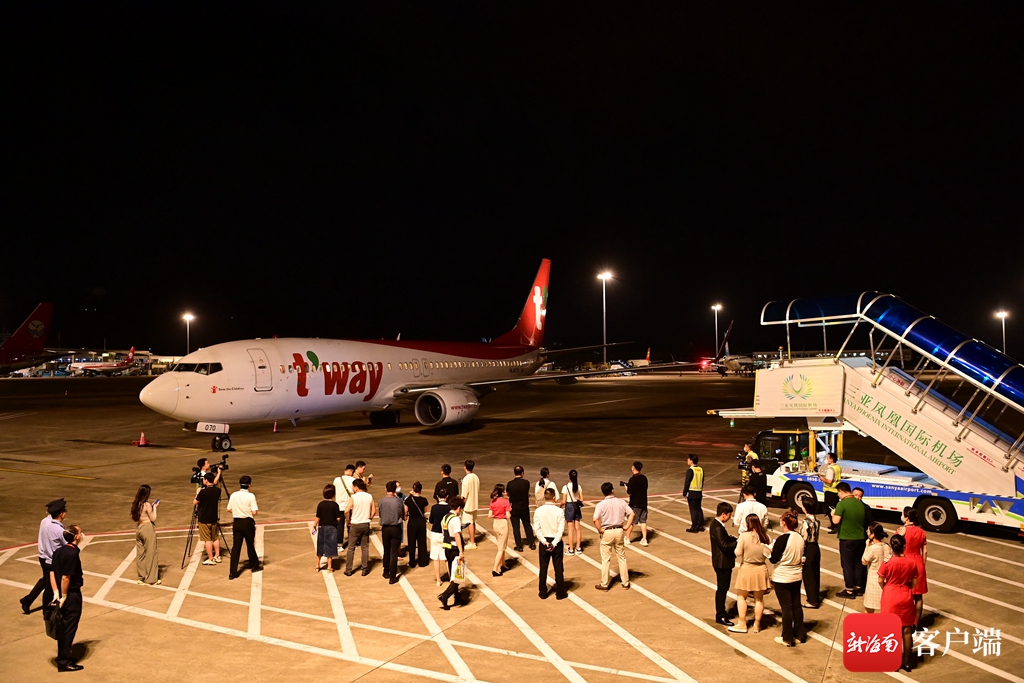 新海南客戶端、南海網7月6日消息(記者 沙曉峰)7月6日01:23,由德威航空執飛的TW621航班搭載著125名旅客從韓國首爾抵達三亞鳳凰國際機場,標志著“三亞=首爾”國際航線正式開通。該航線也是三亞鳳凰國際機場時隔三年恢復的首條國際定期客運航線,此舉進一步拓寬了中韓經濟文化交流的通道,切實搭建起境內外旅客往來海南自貿港的便捷“空中橋梁”。
